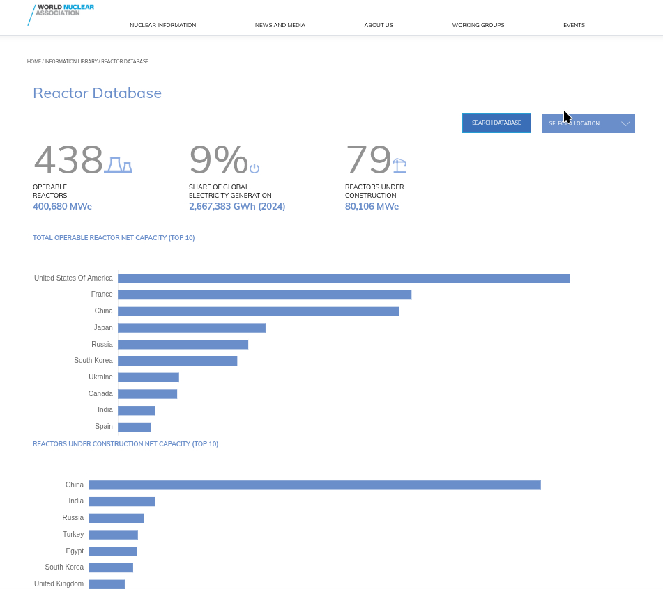 Продолжаем знакомить читателей с информационными инструментами, доступными на сайте Всемирной ядерной ассоциации (World Nuclear Association).
