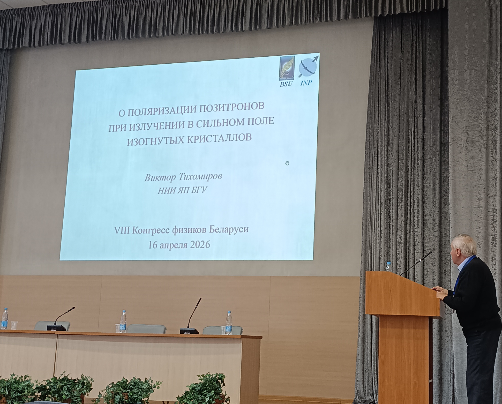 В.B.Тихомиров. Доклад "О поляризации позитронов при излучении в сильном поле изогнутых кристаллов". Фото: BelNET
