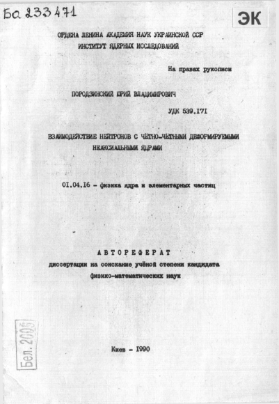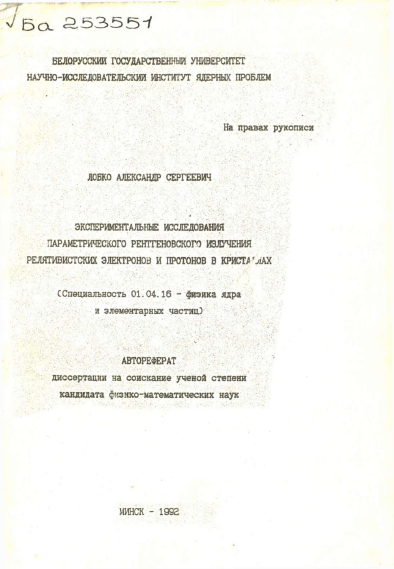 Автореферат диссертации на соискание ученой степени кандидата физико-математических наук (Специальность 01.04.16 - физика ядра и элементарных