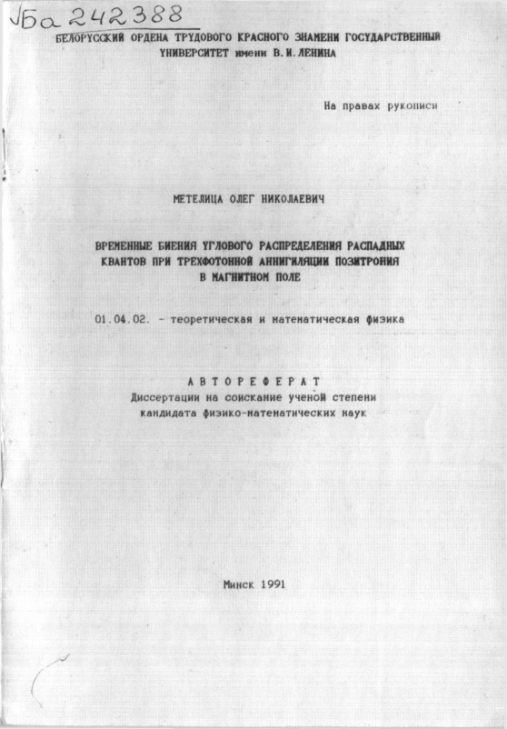 автореф. дис.... канд. физ.-мат. наук / Метелица Олег Николаевич ; Белорус. гос. ун-т им. В.И. Ленина. — Минск : [б. и.],